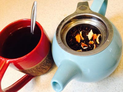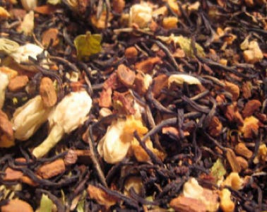 Constant Chai, Use 1 1/2 t. per 8oz. - steep 3-4 minutes,  a very favorite of ours, this vibrant blend is a zippy and floral tea for those overcast days that you need a kick.  Excellent hot with a splash of cream.  Caffeinated.