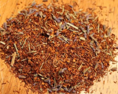 Lavender Rooibos, 3oz, Use 1 T. per 8oz - steep 5-6 minutes for a sweet fragrant drink.  Excellent served hot or cold.  Caffeine-free.