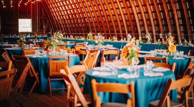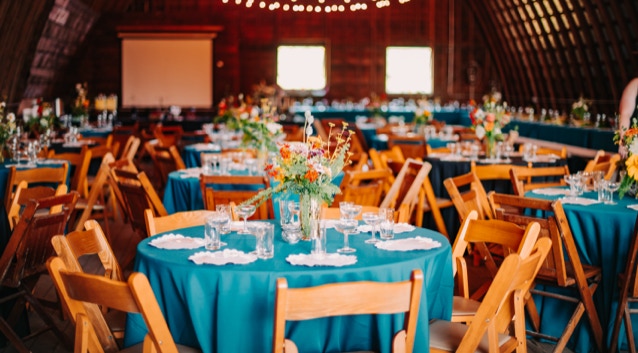 The ramp to the facilities and restrooms is steep and may limit your attendees access. The tongue and groove floorboards, as well as field parking, are imperfect and heels are not recommended. Smoking only permitted in designated spaces. This space is limited to 135 people and is ONLY available during the months of July, August & September.